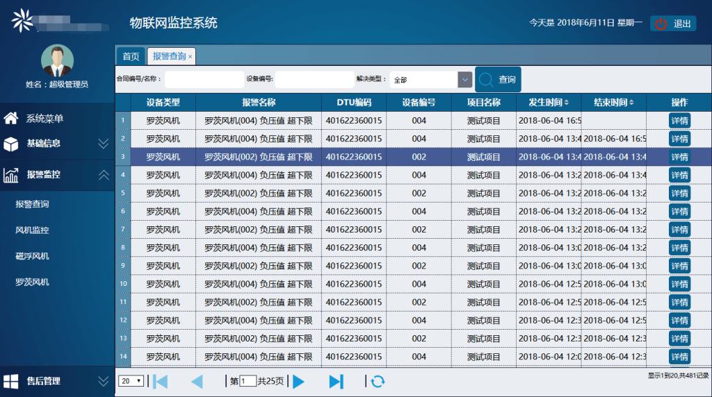 透過互聯網,手機APP可簡易操控,隨時、隨地獲得羅茨風機運轉資訊。http://m.hnfibre.com 當羅茨風機運轉狀態異常時,系統具備即時告警和預警功能。